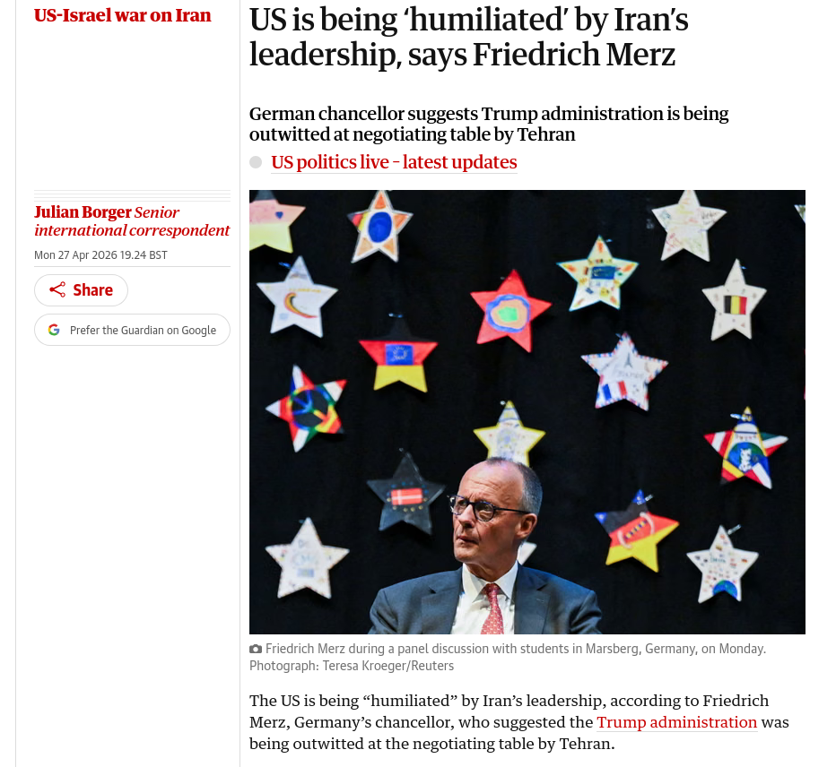 Trump has taken to using Iran's own tactics against them where he doesn't outright reject their proposal, but "remains skeptical" and continues to slowly choke the life out of Iran, forever.https://x.com/zerohedge/status/2048886652546781674>>534004928>He hasn't unlocked New Trump Style: MAGA domainBro, that is just level three. You are never going to make it if you can't manifest enough curse energy to erect a 3rd tier simple barrier like that.