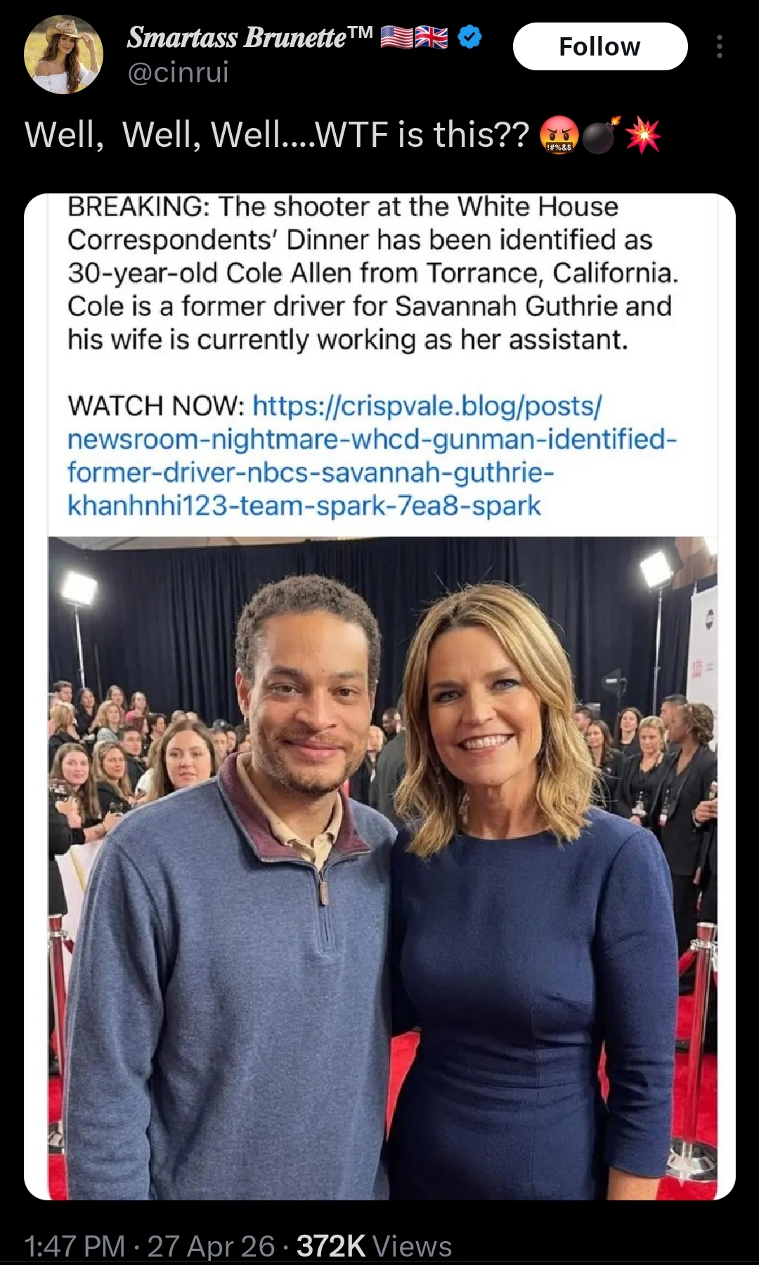 >>534004646henloO'Dimwit is taking heat, but since when does the left care about accountability? Newt "the astute" Gingrich:>Norah O’Donnell may have reached the low point in disgusting and inhumane demagoguery disguised as journalism. The idea that you would take the vicious dishonest and disgusting words of a woukld [sic] be killer who had been blocked b y [sic] the Secret Service but would otherwise have killed a lot of people and you would dignify them by putting them on the air and asking the President of the United States to comment is about as destructive as anything a major reporter has done in a long time. She should be fired for demeaning her entire profession and being the mouthpiece of a would be killer.https://pjmedia.com/robert-spencer/2026/04/27/meet-the-democrats-new-top-strategist-n4952264Dems refuse to learn, double down on rhetoric insteadhttps://amgreatness.com/2026/04/27/dems-fail-to-find-the-right-tone-after-third-assassination-attempt-against-trump/