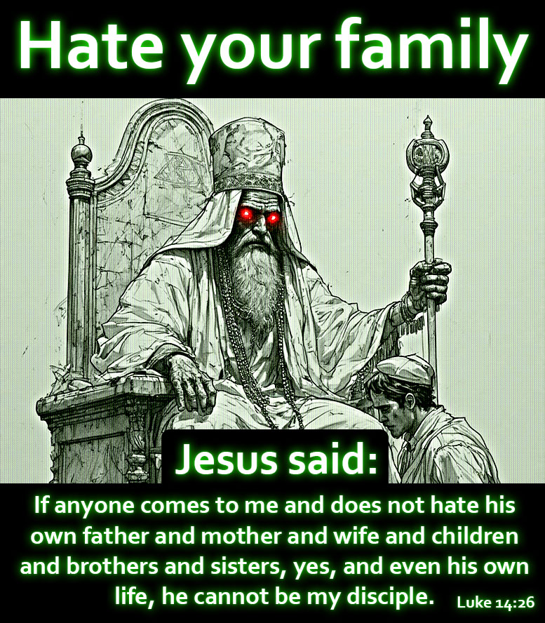 Jesus is trying to say: "Where we're going, we are going to be taking the god damned planet and laying waste to the rest of the world and you will be at my right hand when we murder those people in cold blood, if you're still caught up on mommy and daddy and baby and having a family and all that, you can exit the interview line right now, it's not going to work out between us".That's why the Romans and the Jews plotted his murder, the man was about as close to pure evil with a beautiful lay on hands beautiful kumbaiyah lets all be compassionate toward each other flimflam, remember, Jesus Christ was a practing magician and honey-eating starving stage-performer from age 8 to 17 after his parents disowned him for causing fights. He was able to fool the entire planet with his magic tricks designed to bedazzle young adults with sub-90 IQ.If you're following this nimrod as if that's the ultimate, I have bad news for you, you are literally retarded in the mathematical rank ordering of the word, acknowledged by government.Jesus Christ is a nothingburger, the troop alarm that Jews and Christians don't agree regarding Moshiach, is all kayfabe and Jewish Kitman. Christianity itself is a Jewish Kitman and Israeli Hasbara. Darth Vader is Annikin Skywalker's biological father.