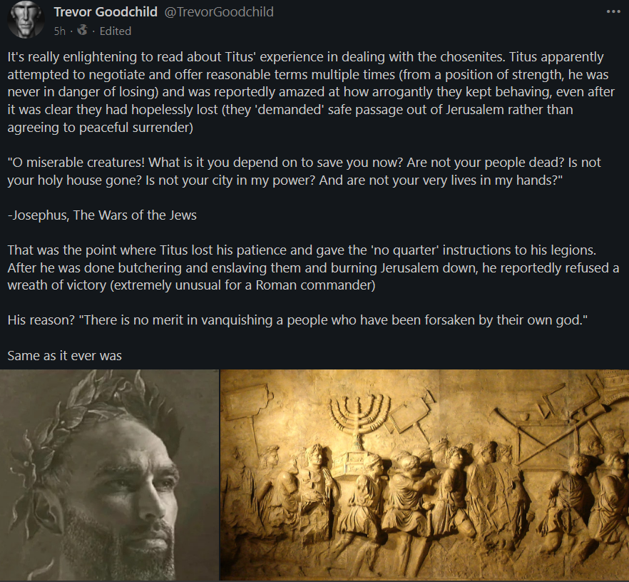 >>534008937This makes a lot of sense as to why there's a lot of hate towards the King of the Universe, Jesus Christ.Let's not forget that Satanism is a branch of Judaism, as they worship the same Master(s).John 8:44 - You are of your father the devil, and your will is to do your father’s desires. He was a murderer from the beginning, and does not stand in the truth, because there is no truth in him. When he lies, he speaks out of his own character, for he is a liar and the father of lies.