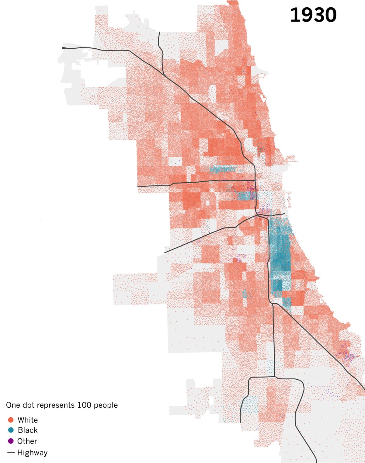 Chicago/Cook County Map for those interested. The white neighborhoods are just above downtown, far Northwest and Far Southwest. The entire Southside is garbage.