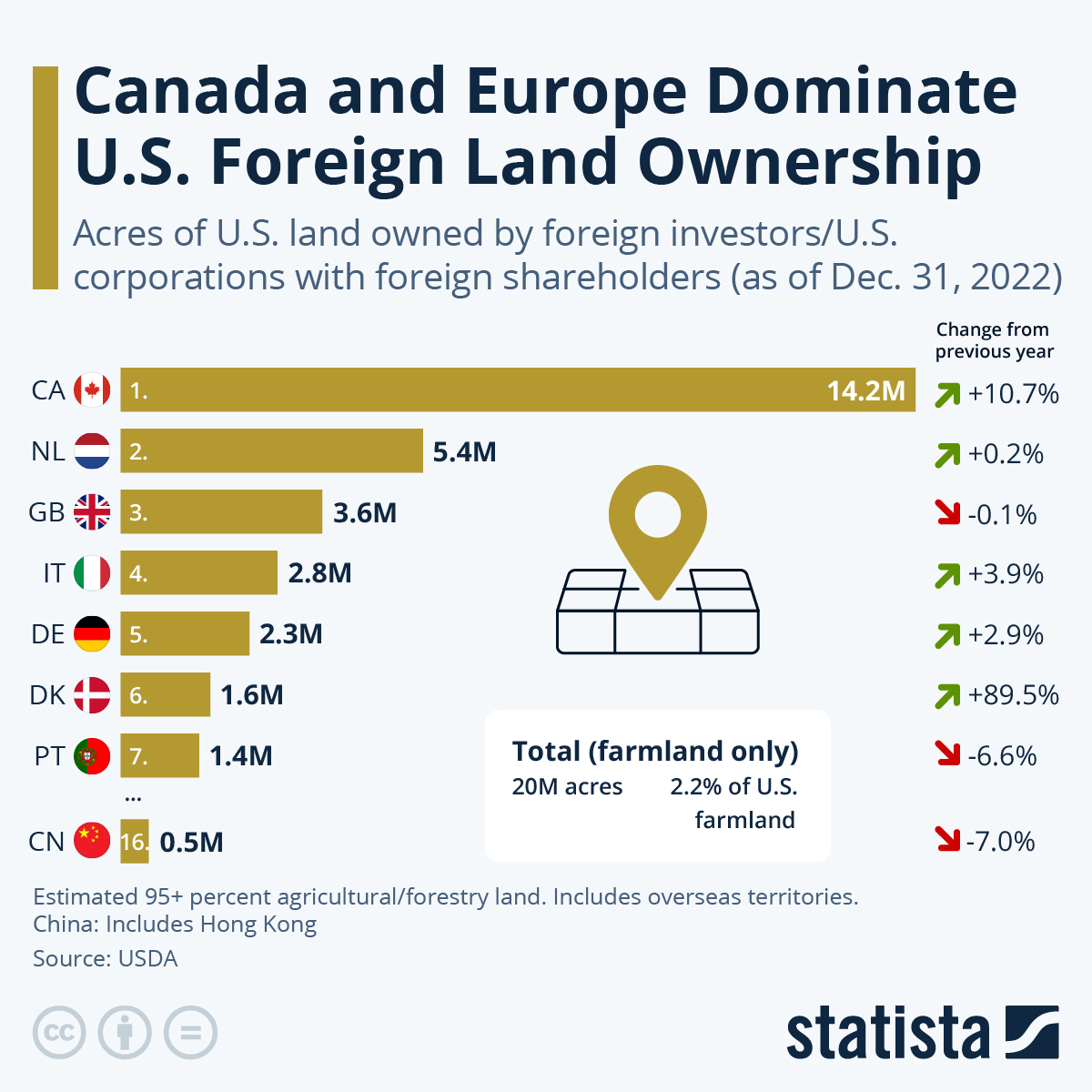 >>534016455>As of late 2023, Chinese entities and individuals own approximately 277,000 to 384,000 acres of U.S. agricultural land, accounting for less than 1% of all foreign-owned farmland. Major holdings are concentrated in Texas, North Carolina, Missouri, Utah, and Virginia, often tied to corporate acquisitions like Smithfield Foods