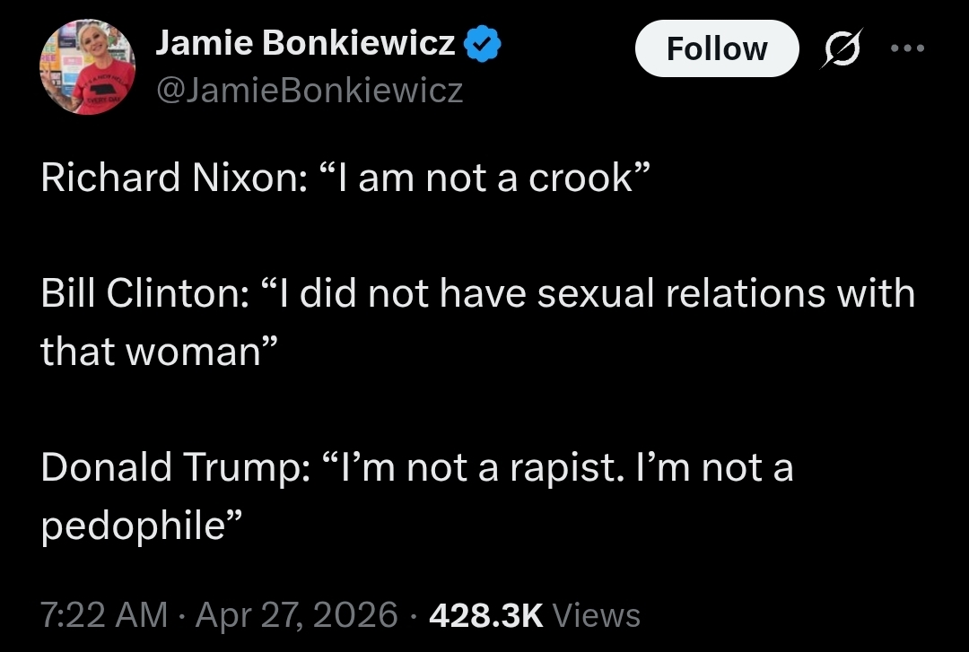 Being in the same room with actual Real American Men, made the cowardly journalists look even gayer.https://nitter.net/PapiTrumpo/status/2048832655081209898#m