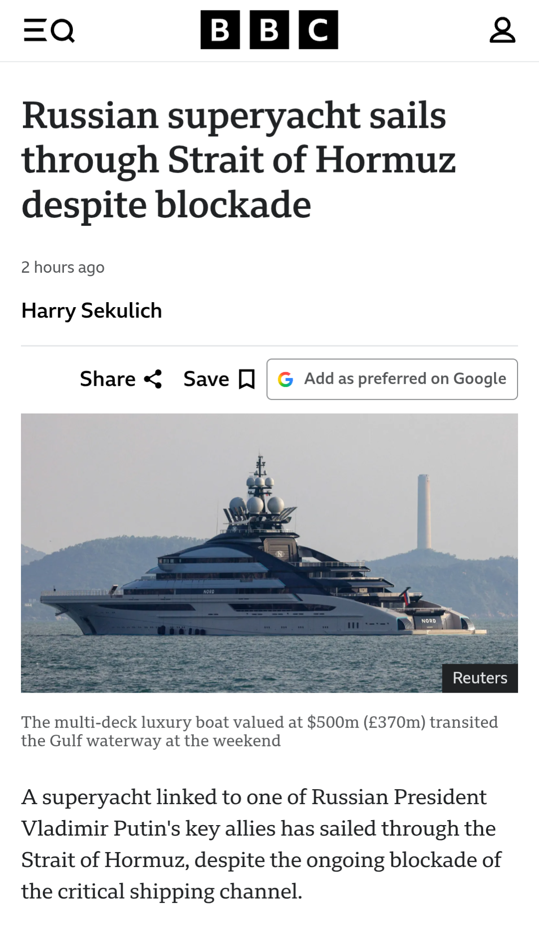 >Sails through the blockades in the strait of HormuzEveryone loves the Russian (billionaires)