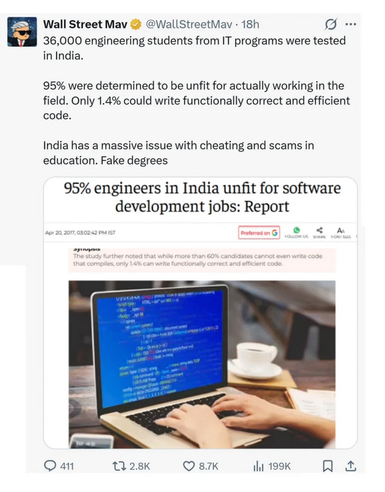 Literally all of you have fake degrees from some Jeet university with ZERO actual competency or training. Your entire country is a phone scam. You apply for oversea jobs with a 5.0 GPA degree (with less knowledge of your field than an actual American elementary student) and still end up getting hired by the Jeet HR. Then you ruin the entire company and repeat.