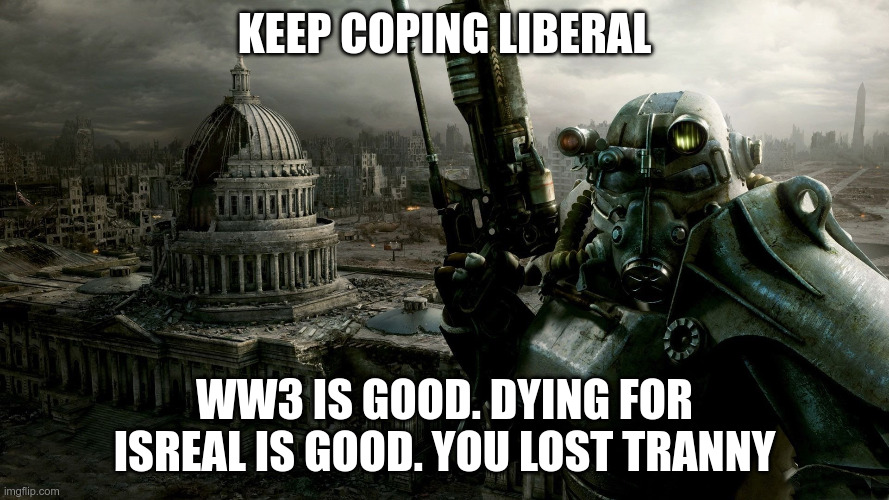 >>534021200He wanted to believe. He wanted that actual change is happening, that the chuds are making a difference, that they are winning and something is being accomplished. Getting Trump elected was such a long shot that it seemed impossible, but they still managed to help it somehow twice, even making a comeback from losing once. People wanted to believe that it wasnt all for nothing. They wanted to believe that the establishment, the country, the demographics would be just that simple to fix. Its sad to realize that it was all for nothing, murica is still collapsing and now the last of its strength will be squandered on a failed jewish plot, trying to get the most out of a dying golem. I don't blame anyone for wanting to believe but you all deserve your fate.