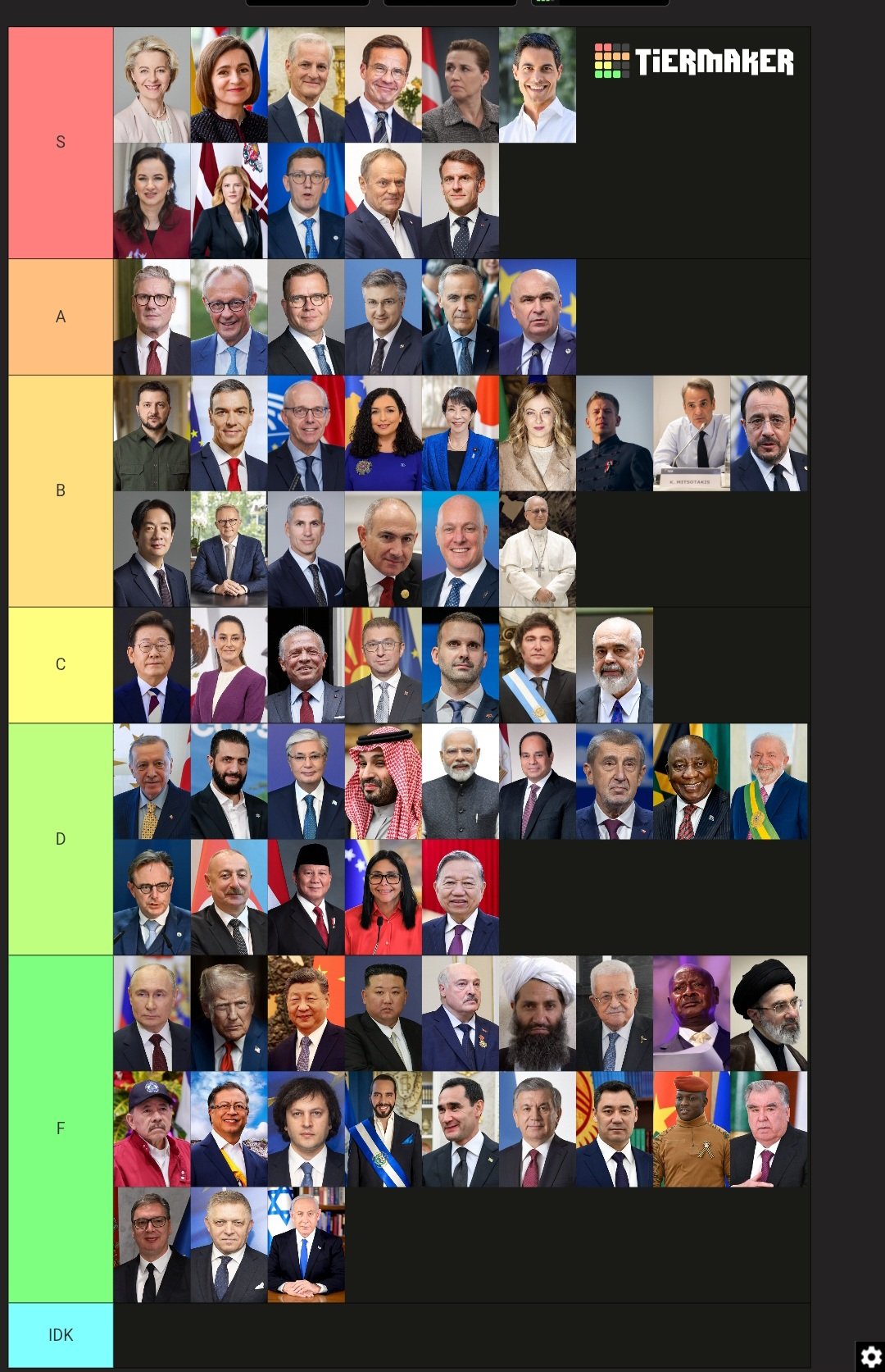 He can't be a liberal. Well, if he is retarded, maybe. He put those globohomo faggot european leaders who push for total control in S tier after all.