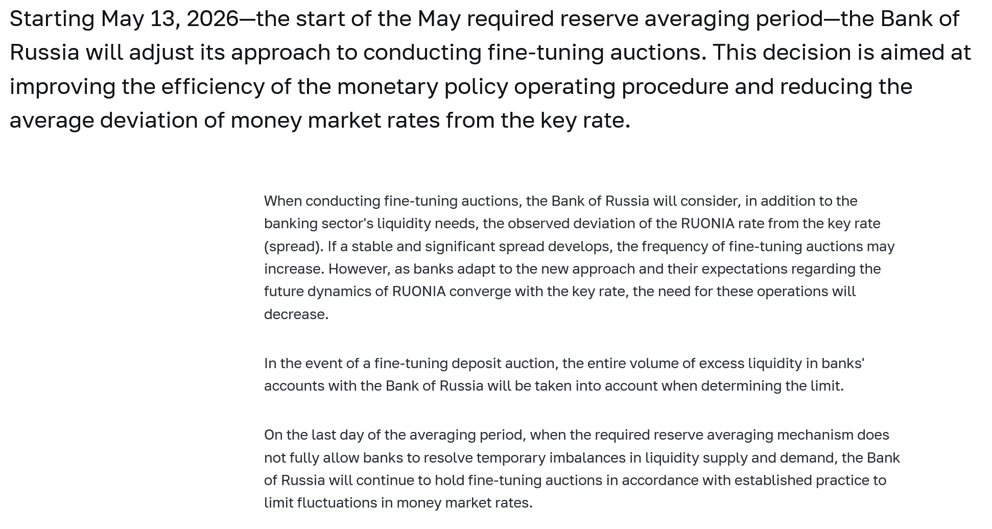 >The Bank of Russia will change banks' approach to creating reserves for loans for multi-apartment construction, making it more risk-sensitiveSounds good. Banks need much more capital on hand to hedge against construction collapse. I think what they're adopting is pulling away from western style financing to Chinese style financing. Dunno if anything can be gleaned from that.However they're not implementing it until Q4 27.>The new approach is planned to come into effect on October 1, 2027Not sure hwy they're stalling for time other than banks are so short on required capital that they would never be able to drum up enough this year.