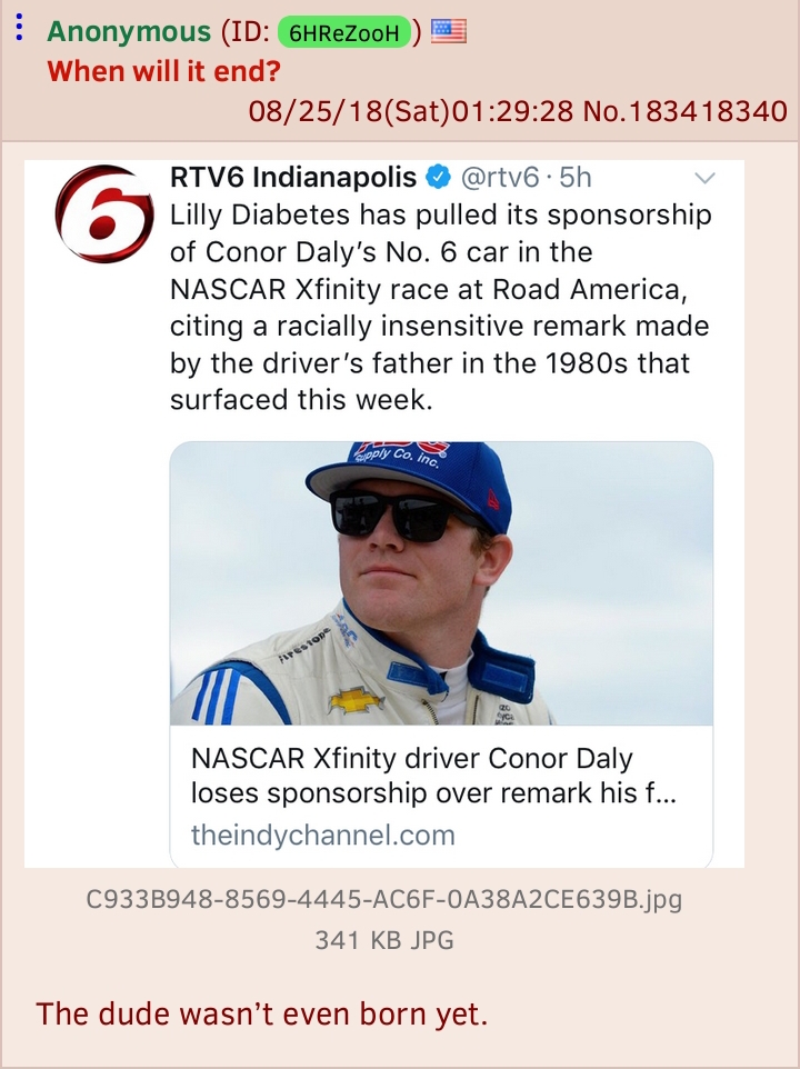 >>534038485remember when they cancelled Connor Daly for an insensitive remark his father made before he was born?>who?exactly