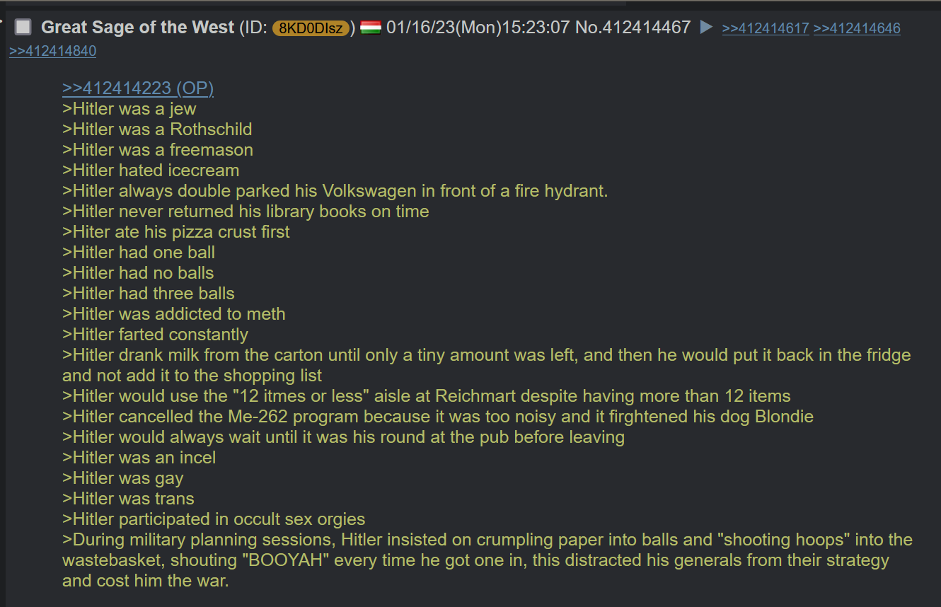 >>534056498The goal was to disrupt conversation with flat earth tier schizoposting about Hitler, that is true