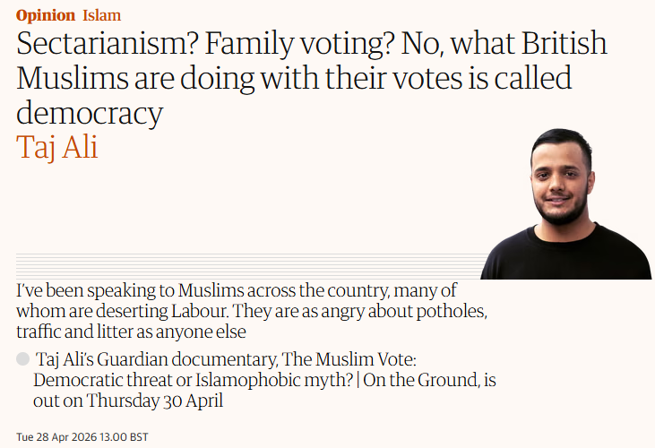 >>534061838>a muslim guardian writerVery trustworthyCovid proved, because the msm literally told us, that these communities don't watch the news. They don't give a shit about this country as long as they're getting what they can out of us. And when their nephew, who went to university and is very smart, tells them to go vote Green or whoever, they do it without question