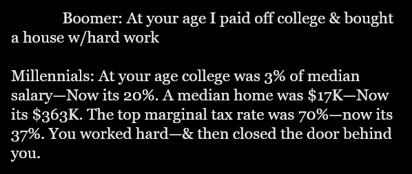 Why are young people so lazy? If they worked as hard as their fathers and grandfathers they could easily own a home, have a wife and kids.