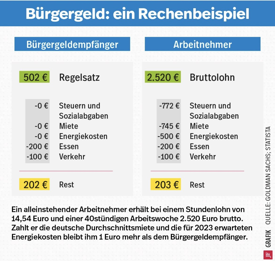 >>534057107This graphic is a scam. I want to see any working person paying the same as a jobless retard for food and transport. >cook at home which the wagie cant do as easily>sozialticket for ~40€ instead of a car which the wagie needs unless he is in a city which is expensive People commute from outside of the cities while Ukrainians, Arabs and lazy germans get free housing in the city.