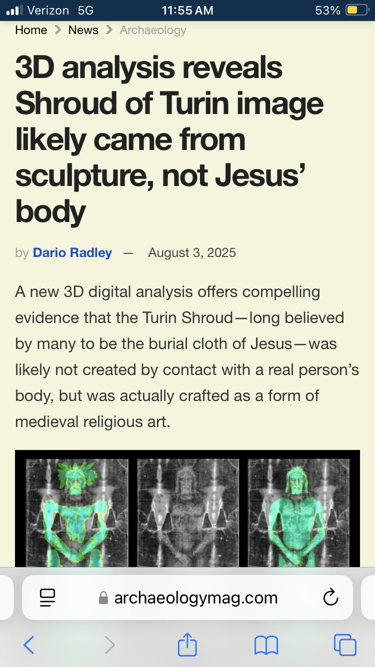 >>534056502A 2025 study of a medieval manuscript (c. 1370s) describes a Bishop of Troyes who uncovered the artist who confessed to painting it. This proves that shroud of Turin is false.