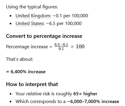 well, he's visiting the usa from the uk so his chances just went up 7000%