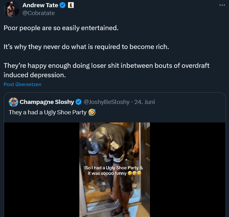 Tate comes across as a piece of shit, the other as a slightly more sympathetic cuck.