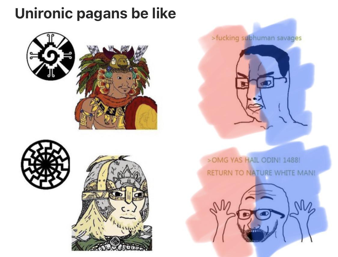 When you want a divider or Litmus test, ask the Catholics/Christians generally how they feel about the Northern crusades (and horrific things done the the Baltic pagans) and see how their faces will light up with Abrahamic bloodlust and anti-european takes. "Le based, haha we fucking crushed them (native european spiritually) tree-worshipers, haha le based and cool Crusaders"When Abrahamist come to Europe they saw nature with suspicion and did violence on Pagan sacred sites. They coopted holy-days and festivals out of pure necessity to even stay alive. This should tell Europeans some things.