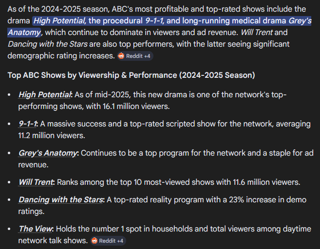 >>534075835how is abc even still in business? the only show on this list I've ever heard of is the view and that's just because it's a lolcow