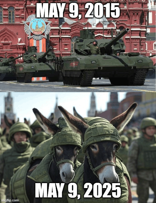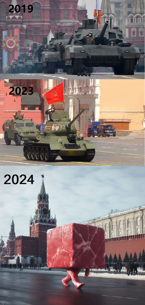 >Russia's May 9 parade will feature no military vehicles for the first time. The Defense Ministry blamed "the current operational situation."Them doing the parade without military vehicles would kinda be even funnier than cancelling it completely lol.Imagine a parade with nothing but bukhankas, golfcarts and some people walking along kek