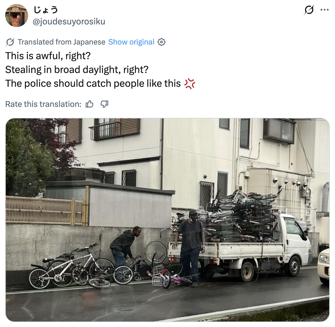 >>534073953This has to be fake.I mean, many x posts are fake but a picture of black dudes stealing THAT many bikes is a bit on the nose.