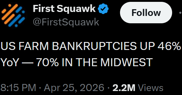 >>534083281We're not doing too bad on farm bankruptcies here yet, though we're not quite the Midwest. We're usually clustered into the Mountain West and the Pacific Northwest. Not to say we're not having a major uptick in farm bankruptcies of course. We've had some small growth in the livestock side, more on a finance side rather than the production side, but really not enough to keep things afloat long term.Expect potatoes, barley, peppermint, and alfalfa to go up since we're the top producer in the US for those, hops will probably go up as well since we're number two in that one, and then things like sugar from sugarbeet, milk products, onions, peas, winter wheats, and lentils are also ones we're in the top 5 producers for so they'll probably see an increase in price later this year into next year.But for some reason, we're too busy to talk about it or to plan to do something about it I guess.