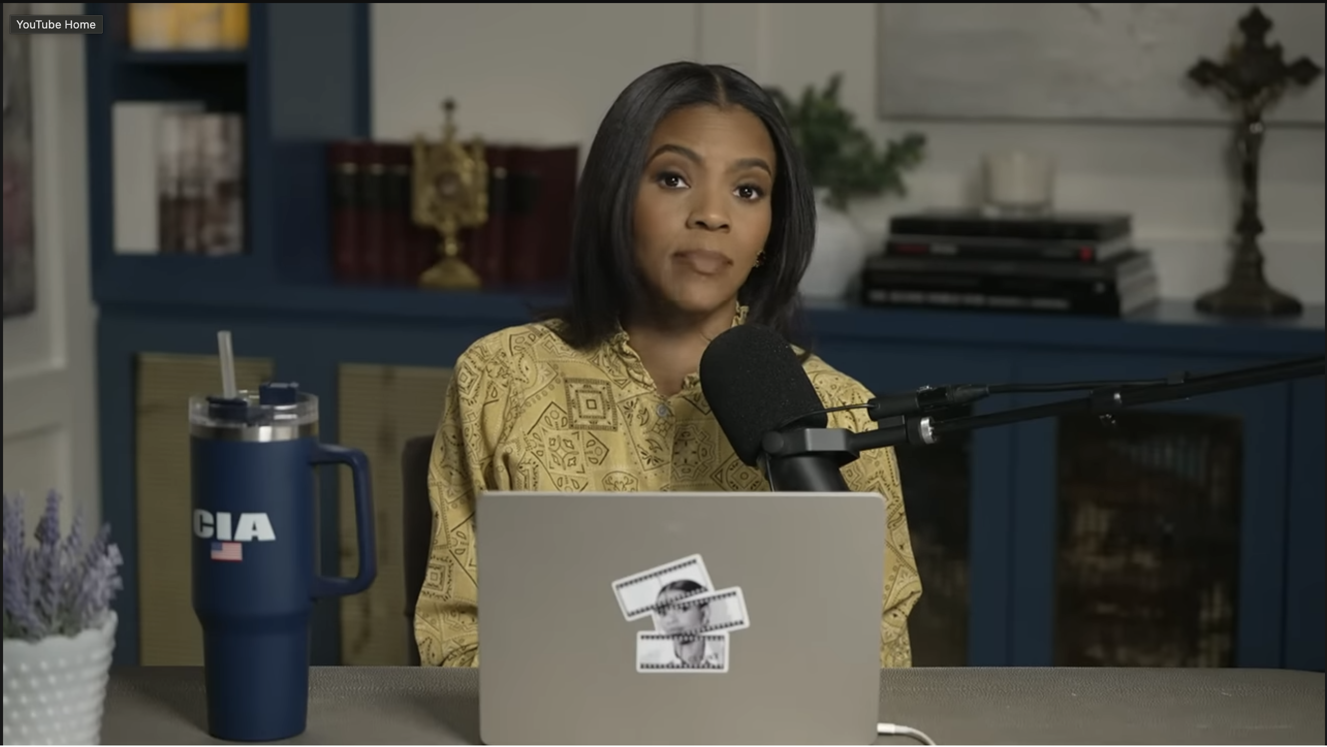 Why does Candace Owens have CIA merch on her desk?