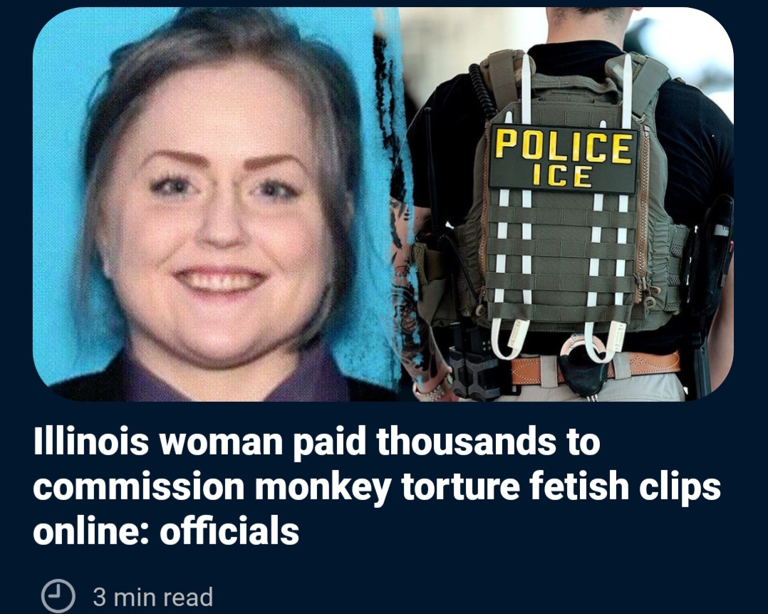 >A woman from Illinois is pleading guilty after paying thousands of dollars to have others make so-called "animal crush videos," which included depictions of adult and baby monkeys being mutilated and tortured for users in a deranged online chat group. >Immigration and Customs Enforcement (ICE) sent out a press release Monday indicating Amanda Leigh Fourez, a U.S. citizen from Illinois, pleaded guilty earlier this month to distributing and conspiracy to create and distribute these sorts of videos. >The videos Fourez paid for included footage that showed the monkeys being burned alive, having their genitals mutilated and other atrocities, according to the press release.What are the political implications of monkey torture fetishists?