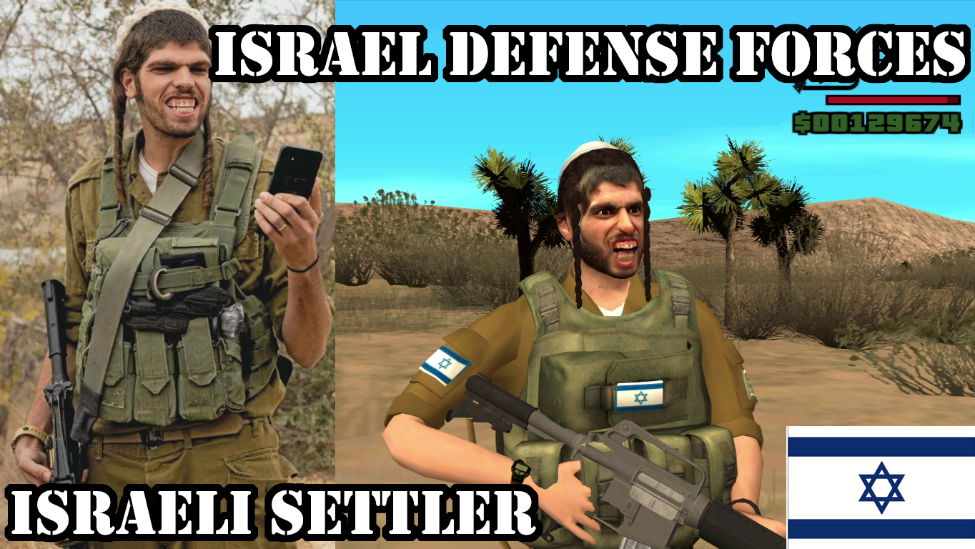 OP HEREYou can use this skin >>534082155 for both as a player skin that remplace CJ(GTA San Andreas protagonist) or to remplace the skins of the enemy gangs(so you can have fun killing waves of jews). You will need:-Grand Thef Auto: San Andreas (2004) for pcTo remplace any ped/character in the game for the jew settler:-CLEO mod loader 0.3.5 (for easier game file remplacement, but the installation is medium level) https://cleo.lior IMGTool (easy installation, but it's very slow to remplace the files)https://www.gtagarage.com/mods/show.php?id=63Here the full list of all the characters in the game:https://www.open.mp/docs/scripting/resources/skinsJust rename both JEW SETTLER.dff and JEW SETTLER.txd file names https://litter.catbox.moe/ivnv8bv67x050obu.7z for whatever ped you want. Enemy gang file names are:Ballas:ballas1 ballas2 ballas3 Vagos:lsv1lsv2lsv3Depending on which tool you use, you now must remplace the vanilla files in your "gta3.img" for the jew settler skin with this new filename. And to play the gang wars you will need a save game at the level "Mission #26 - Reuniting the Families"https://gtasnp.com/8LHs6G-Skin Selector v2.1 to change CJ player skin for jew settler:https://www.gtaall.net/gta-san-andreas/cleo/4876-skin-selector-v21.html>inb4 is too hard!If a fucking spic from a third world country was able to create these mods and skins I think you will be able to remplace these skins too. There's plenty of tutorials in youtube.
