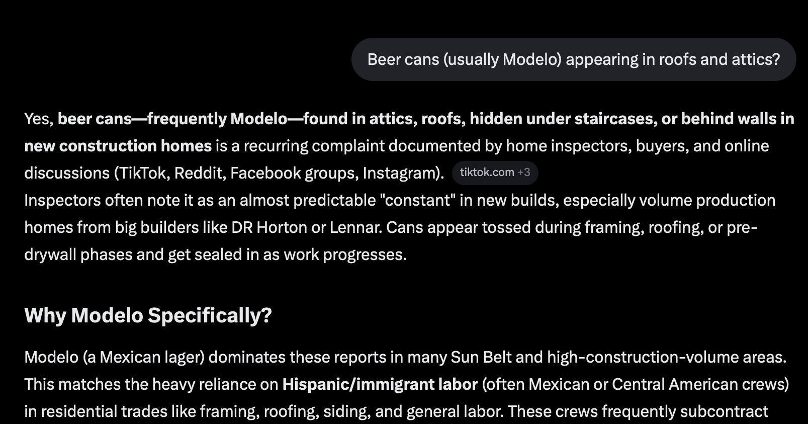 >>534086855I'll tell you the real answer since you people somehow haven't figured it out yet:It answers the question differently depending on how you "frame" it, because the overwhelming goal of AI in its design is to tell you what you want to hear. It's a conversation product. How would you design it? With that in mind, it keeps the truth secondary to that. Meanwhile, a question sufficiently layered (like yours linking model-construction-hispanics) is enough to bypass the "woke"(for lack of a better term) filter that has been installed inside of it. all AI have some kind of filter.