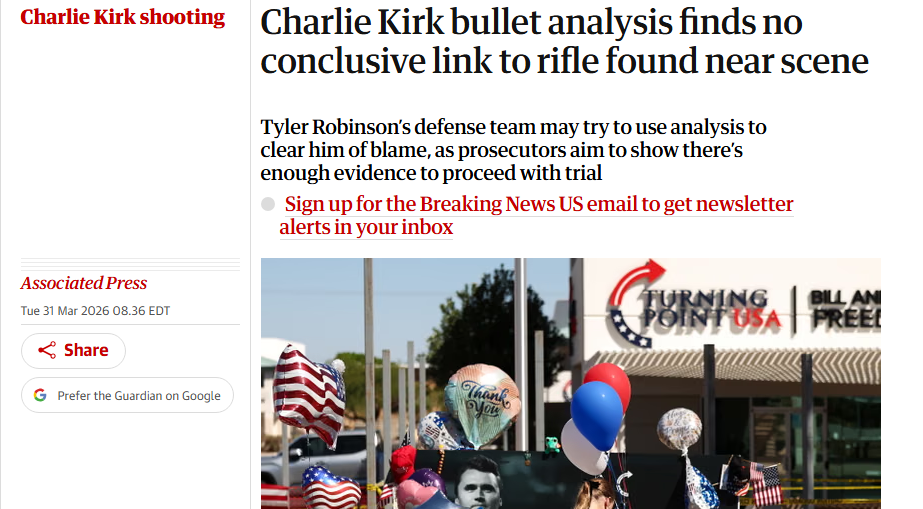 >>534092362>all the evidence, goy!>the evidencehttps://www.theguardian.com/us-news/2026/mar/31/charlie-kirk-bullet-rifle