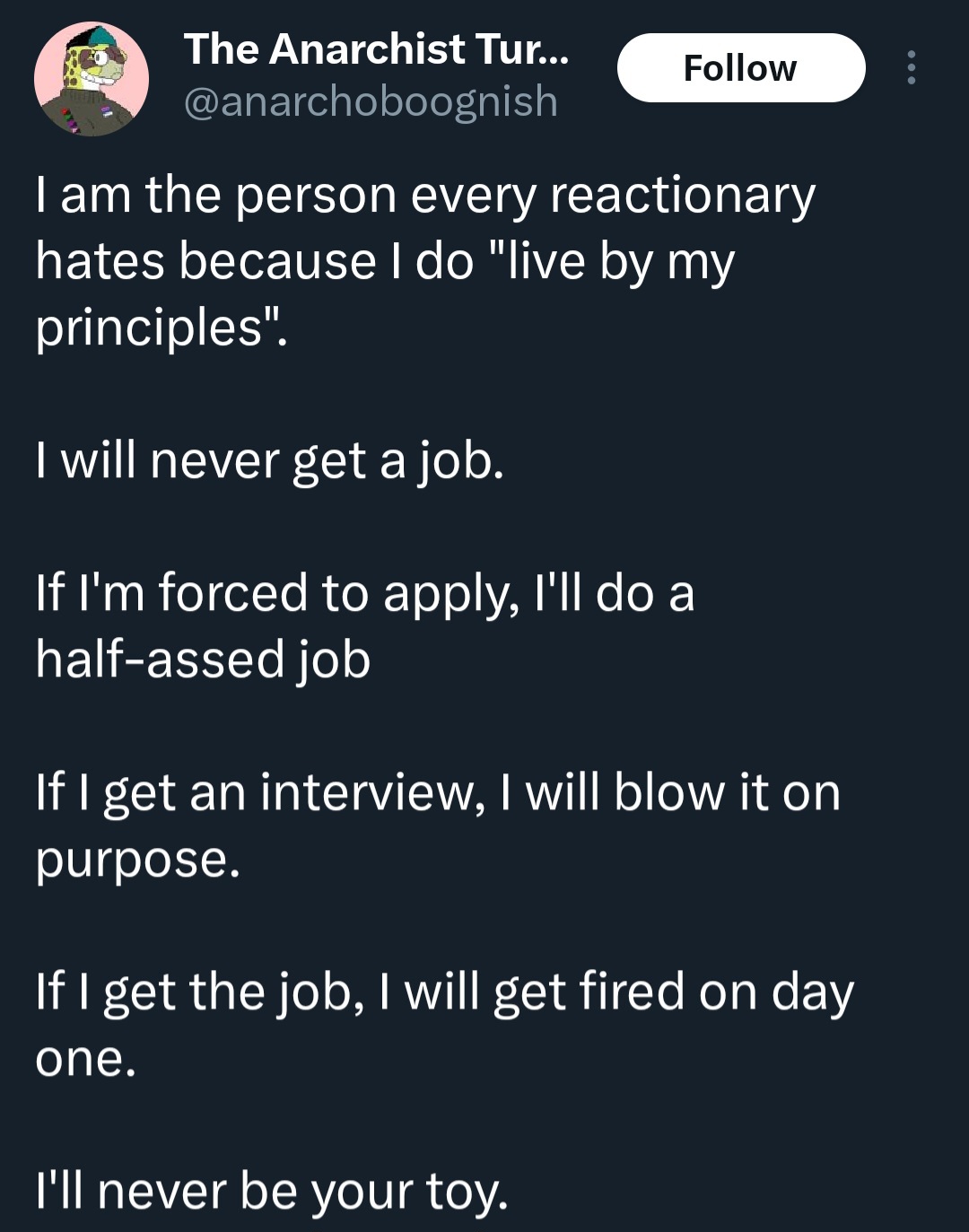 wait, it's some leftist furry. Oh well, I stand by my statement.