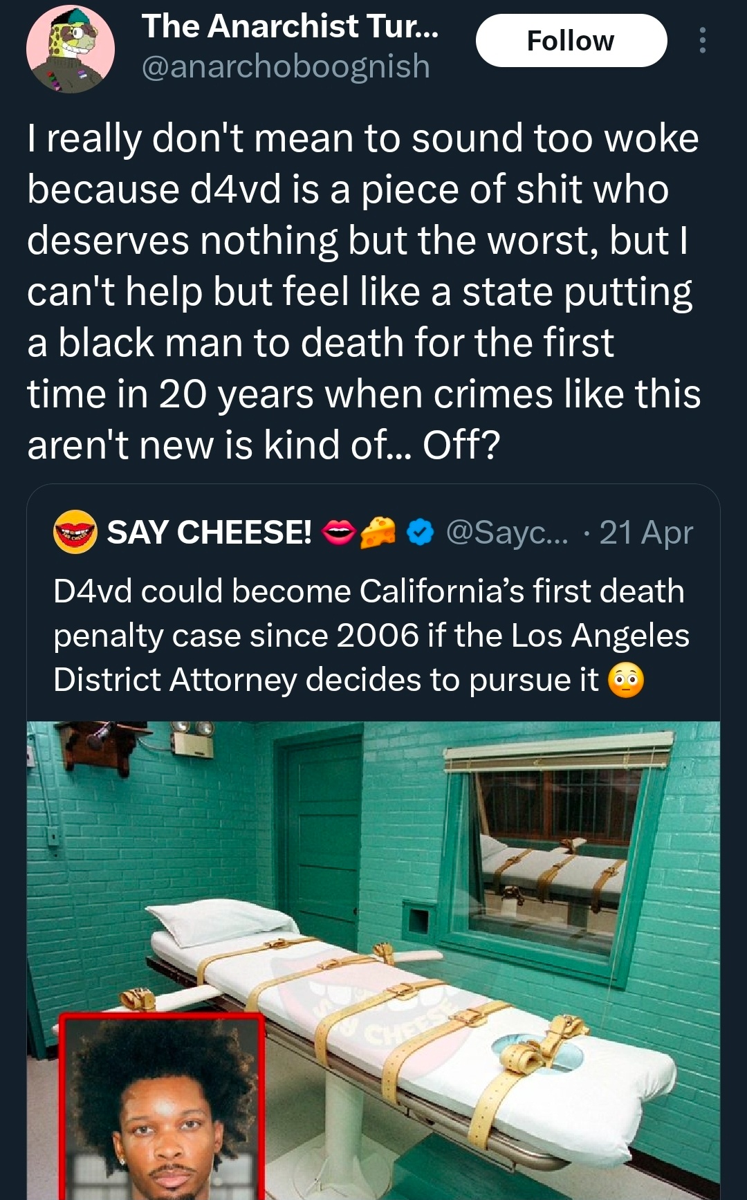 >>534094693Yeah it's wild to me how leftists see this as some kind of "aha! That's what you get!". That's what you get for...stating a fucking statistical fact about black people? That's what's genuinely scary about leftists, they just flat out deny factual reality and are willing to kill for their delusions.