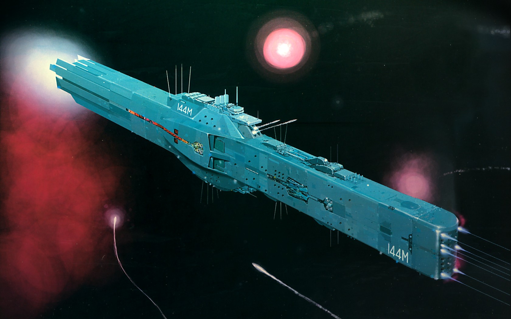 >>534144647Why are the laser turrets mounted in a broadside battery down between the two sections of the superstructure? It massively reduces their firing arcs, to the extent that a missile attack from directly ahead or astern could not be defended against.