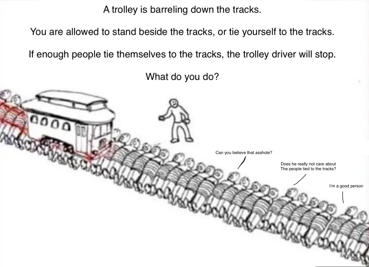 >>534170038We have to stop it to save the people standing on the tracks to stop it.
