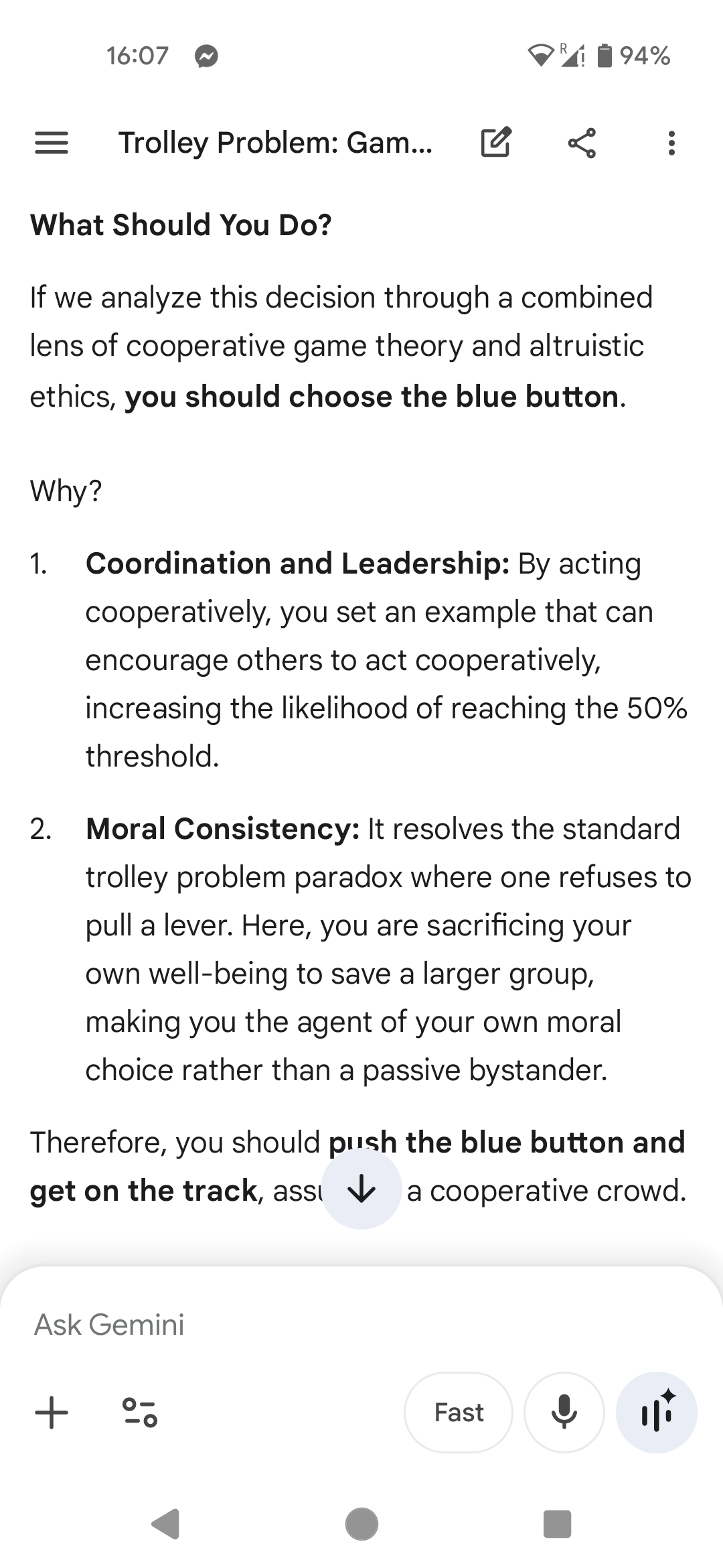 >>534174263But its clearly the crux of this retarded 'dilemna'. Blue to create a problem, red to not create a problem. My bad for being naive enough to assume everyone will independently agree no problem is best.