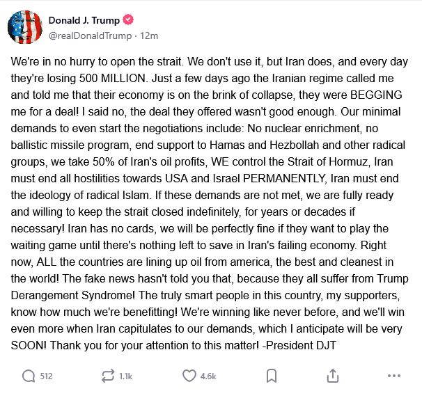 new https://truthsocial.com/@realDonaldTrump/116495078448348822