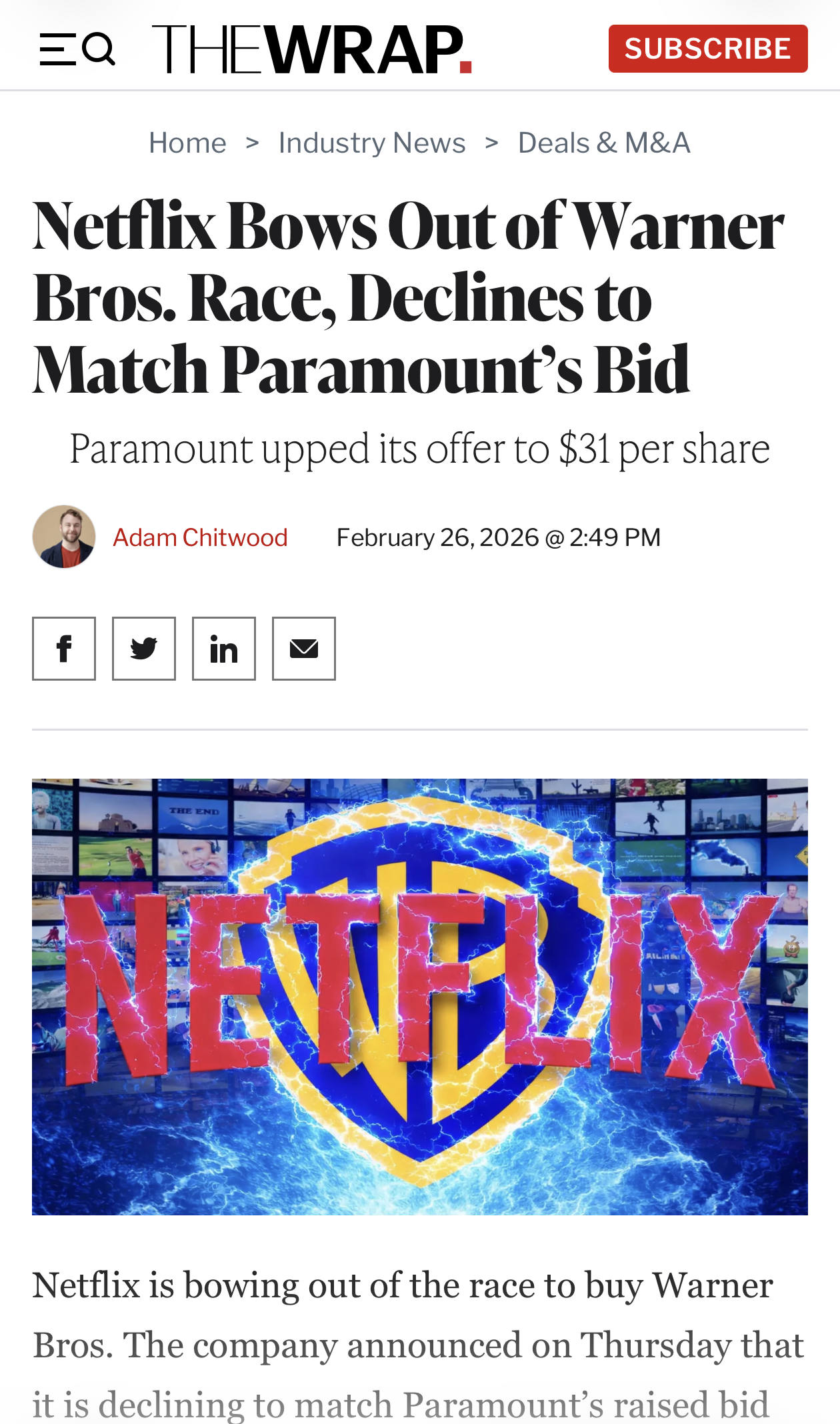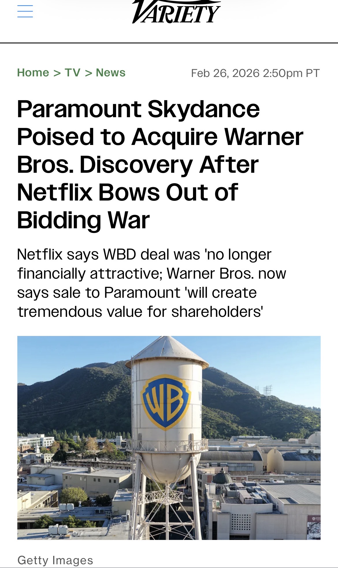 NETFLIX DECLINES TO BID ON WARNER BROS-DISCOVER, WHICH MEANS PARAMOUNT GETS THEM!!!AEW IS FUCKING SAVED!!!https://variety.com/2026/tv/news/netflix-declines-raise-bid-warner-bros-discovery-1236674149/>Paramount Skydance Poised to Acquire Warner Bros. Discovery After Netflix Bows Out of Bidding War>Netflix says WBD deal was no longer financially attractive; Warner Bros. now says sale to Paramount will create tremendous value for shareholders