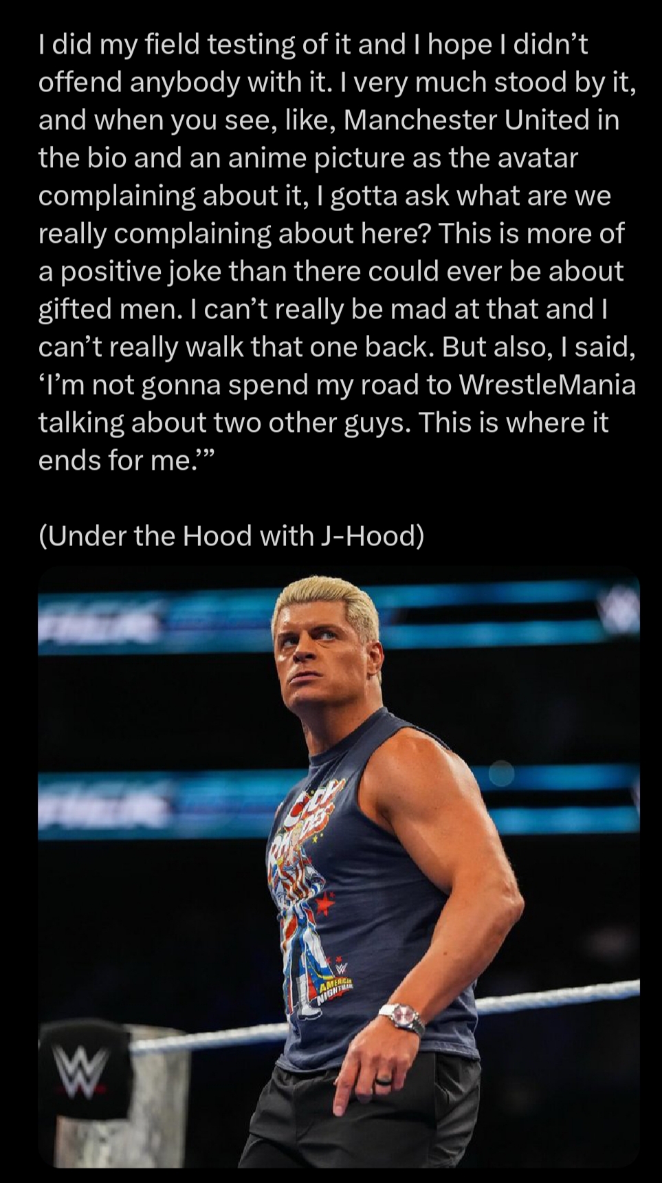 >>19965995Cody is fortunate that WWE fans are too stupid to realize how much of a dork he is. All the power to him though, some of my best friends are stupid.