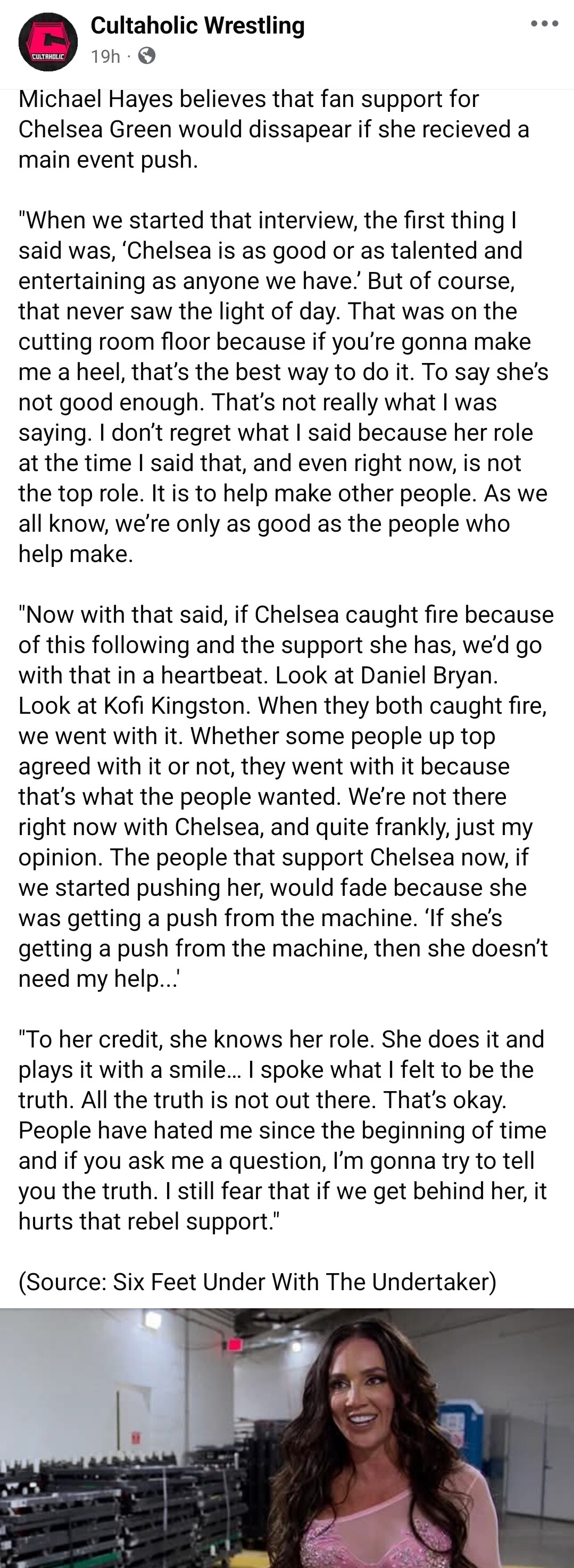 "People would stop caring if she received a main event push"