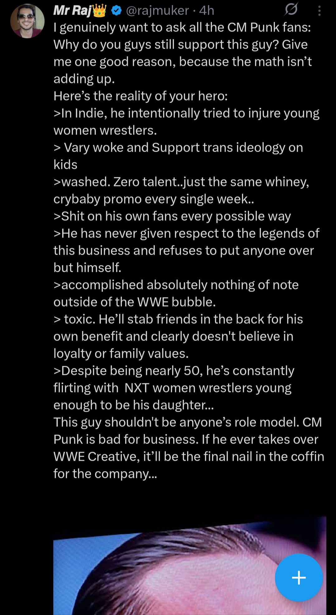 >>20139995nta but Jinder is just a solid classic heel. Good presentation, nothing in his matches makes you like him, everybody gets behind the face and when he lost it was a huge moment.CM Punk was champion for over a year, midcard for most of it (dragging the belt down) and he killed the hottest act of the 2010s (Ryback). The worst champion of all time is objectively CM Punk. Cody and Randy both showed up and in a single segment generated more interest than CM Punk's current forced reign.