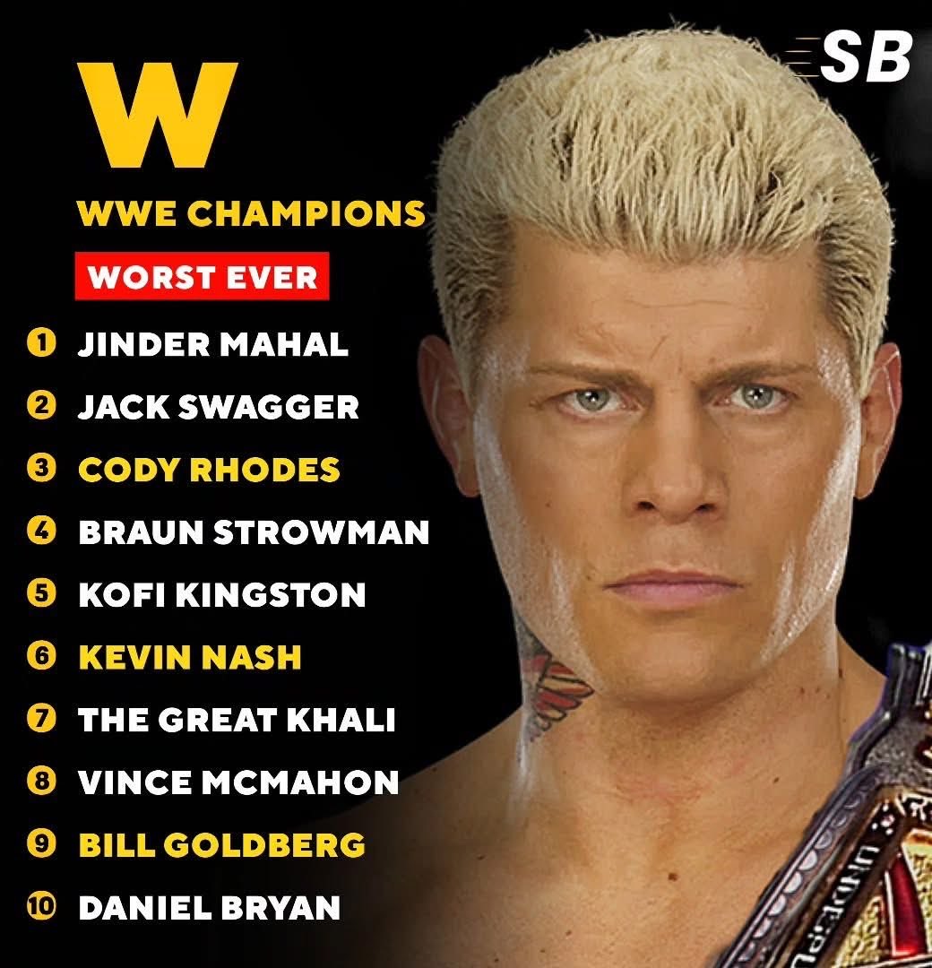 Cody Raheem Rhodes voted 3rd WORST WWE champion of all time