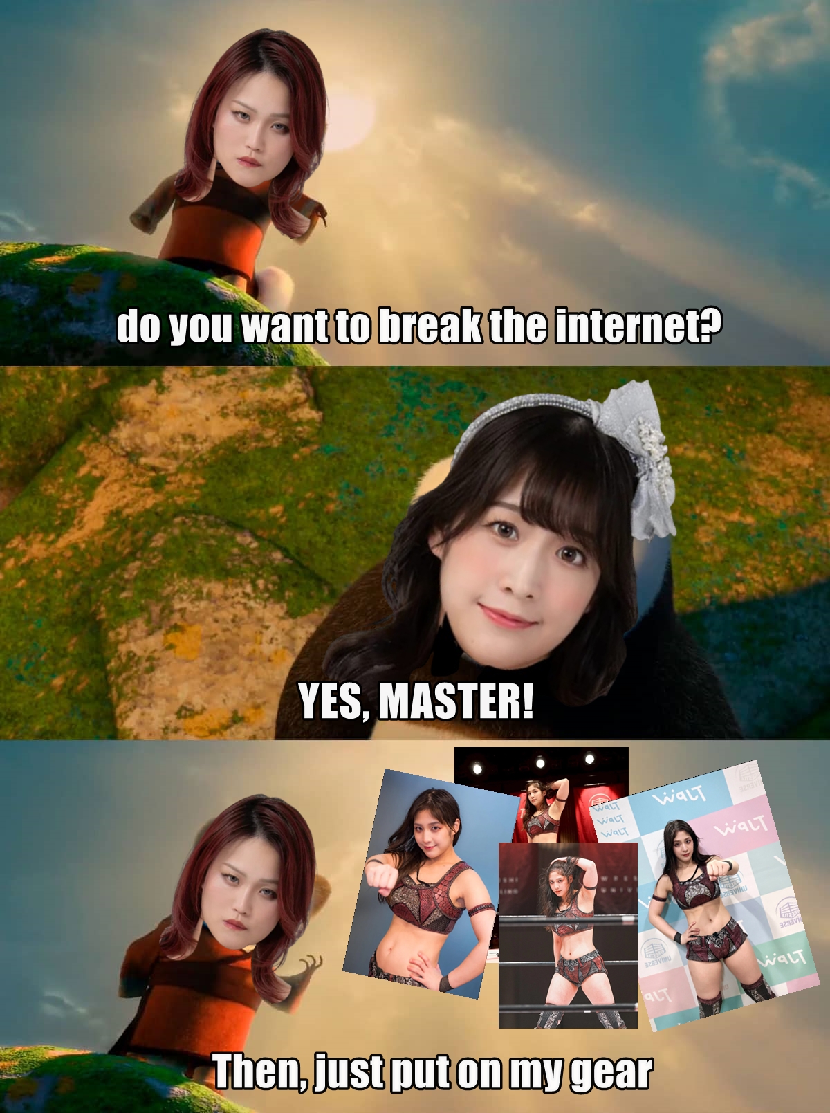 >>17505857Wakana Yamashita worked me into a shoot brotherIs there a reason Miyu started half assing her spin kick entrance. Is it because she slipped that one time