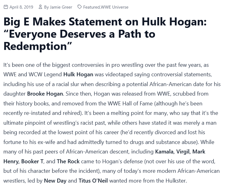 Big E is one of the good ones, he forgave The Hulkster.