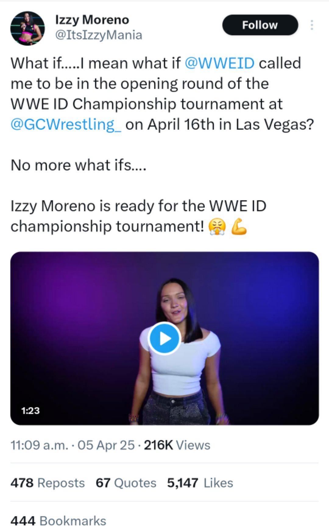 If WWE wants anyone to care about the ID program, they need to sign Izzy and put the title on her
