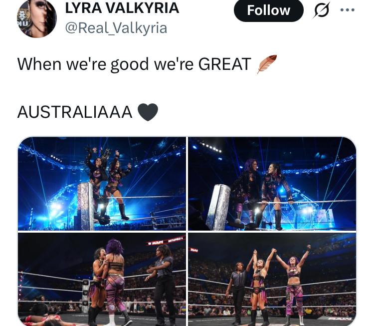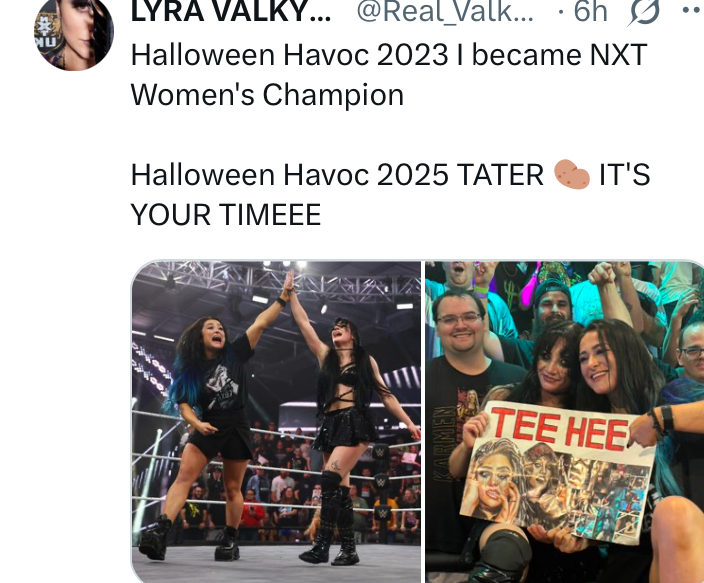 Bayley ass and Lyra https://x.com/zelina_deol/status/1977623840747577644