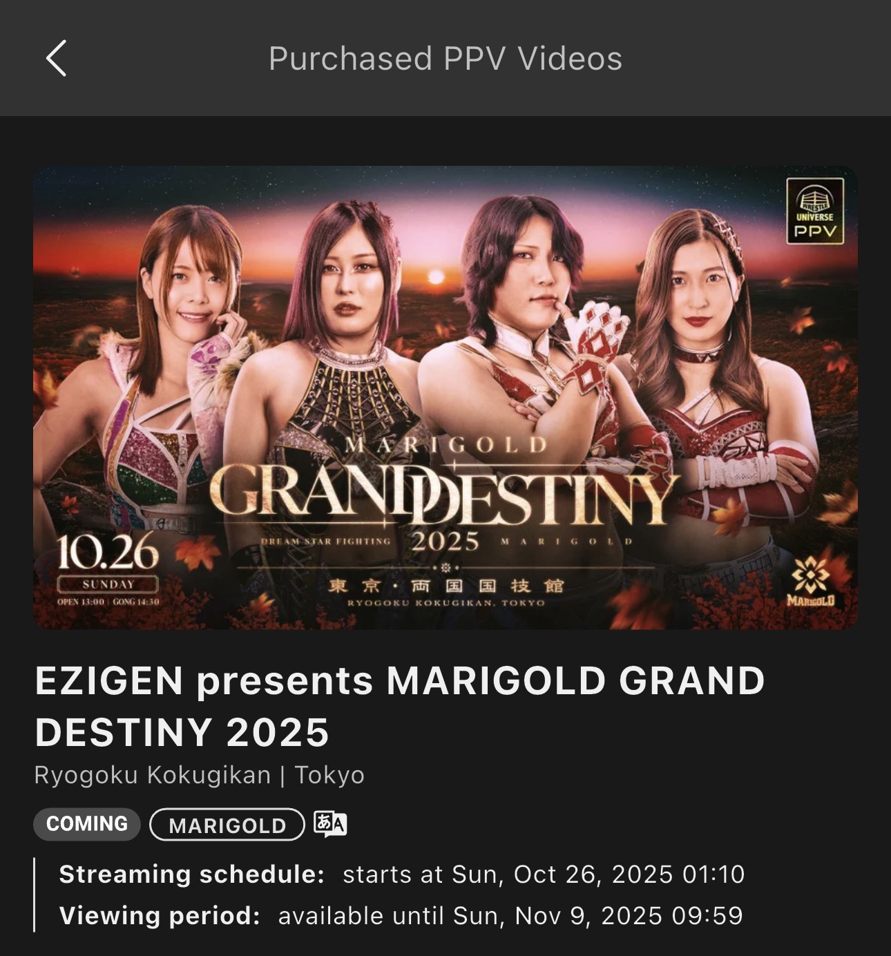 >>19040636Yup! Two house shows in Japan.