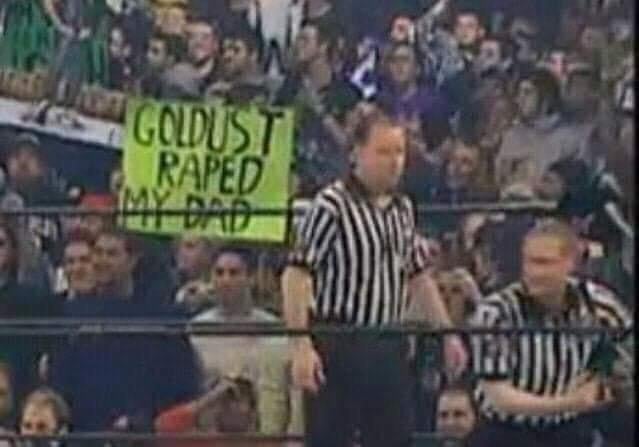 >>19070737They will take your sign and make you leave if someone cries hard enough. I was at a house show and had a sign that just said "the ref has a hard on" and they took it almost immediately.