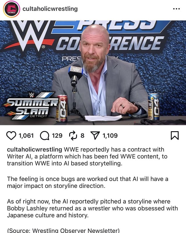 >>19075393>Pays an AI company to learn how to replace all wrestling companies for freeAI is an illuminati scam