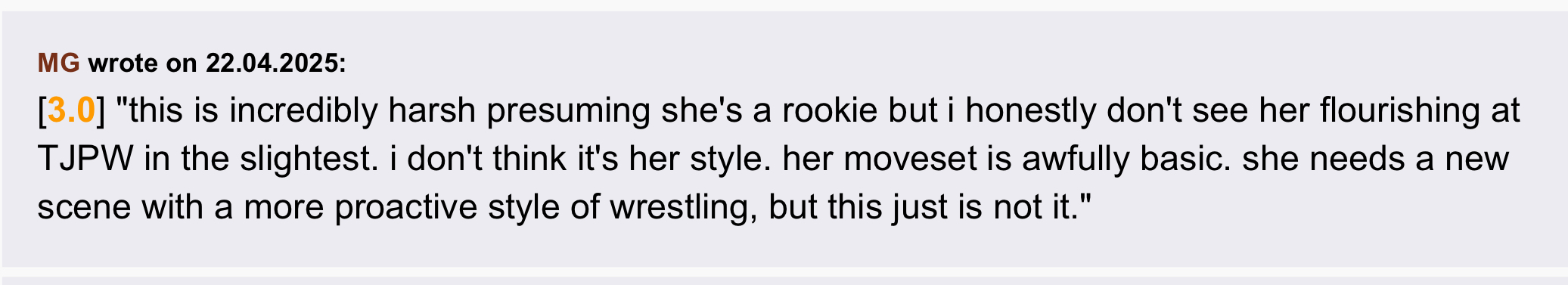 >>19079522>*does mediocre and gets "over" because TJPW acted like she was a big deal and Japanese will just go with what they're told in you're path*