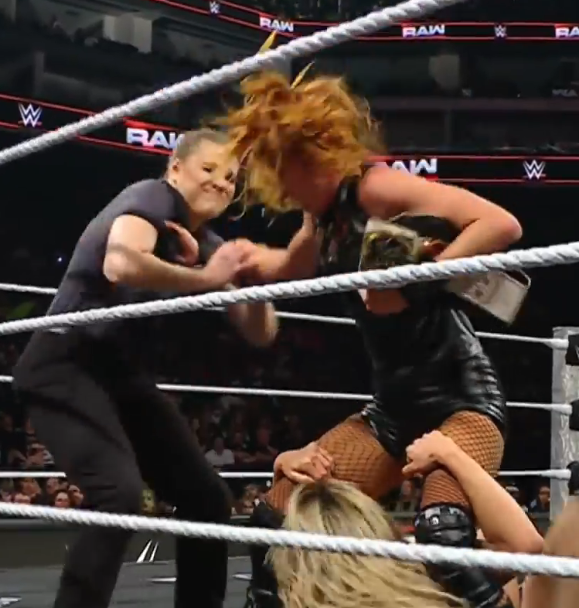 >gets grabbed by becky in you're path